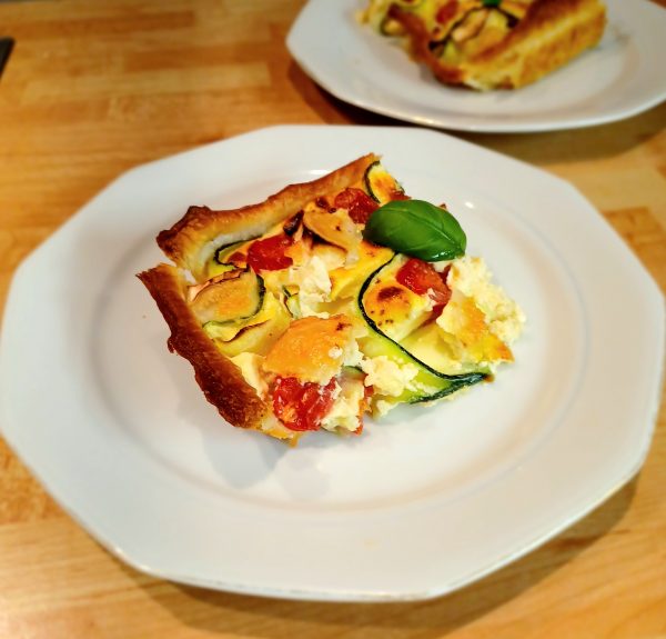 Diese herzhafte Tomaten-Zucchini-Quiche schmeckt warm und kalt. Gut geeignet zum Mitnehmen für die Arbeit. Andere Gemüsesorten wie Paprika oder Aubergine sind auch eine sehr leckere Variante.